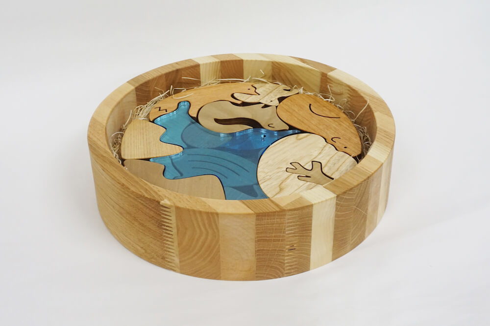 「Split Stool」は小径木広葉樹を使用した組み立て式のスツールです。