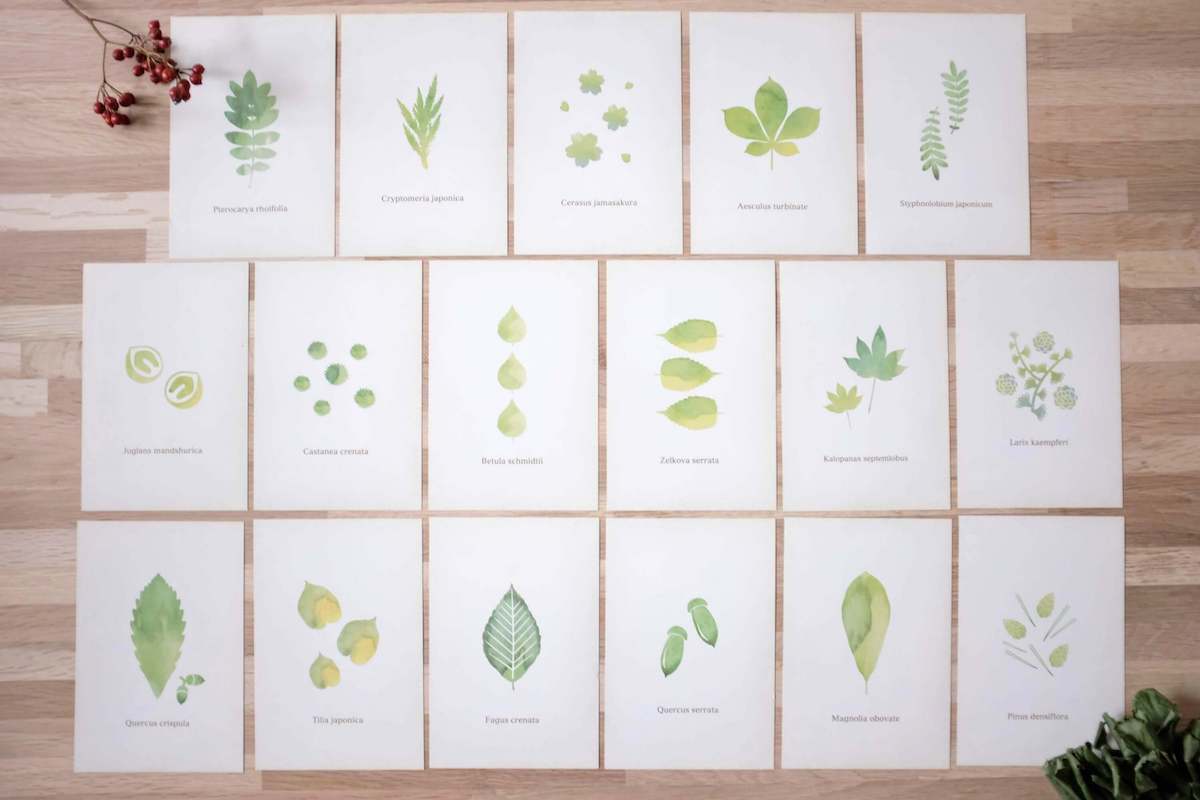 そんな岩泉を代表する17樹種を可愛らしいイラストのポストカードに。17樹種それぞれ一枚ずつをセットにして販売いたします。
