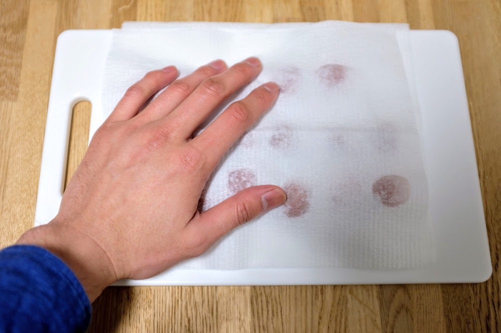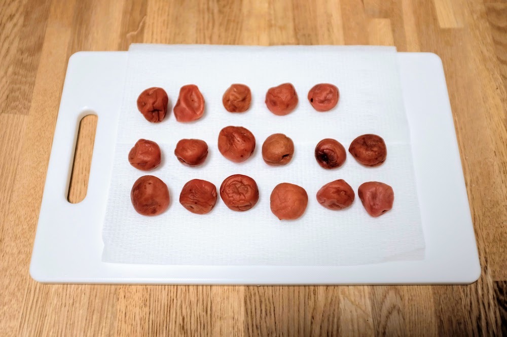 梅干しに水滴がついている場合はキッチンペーパー等で拭き取る。