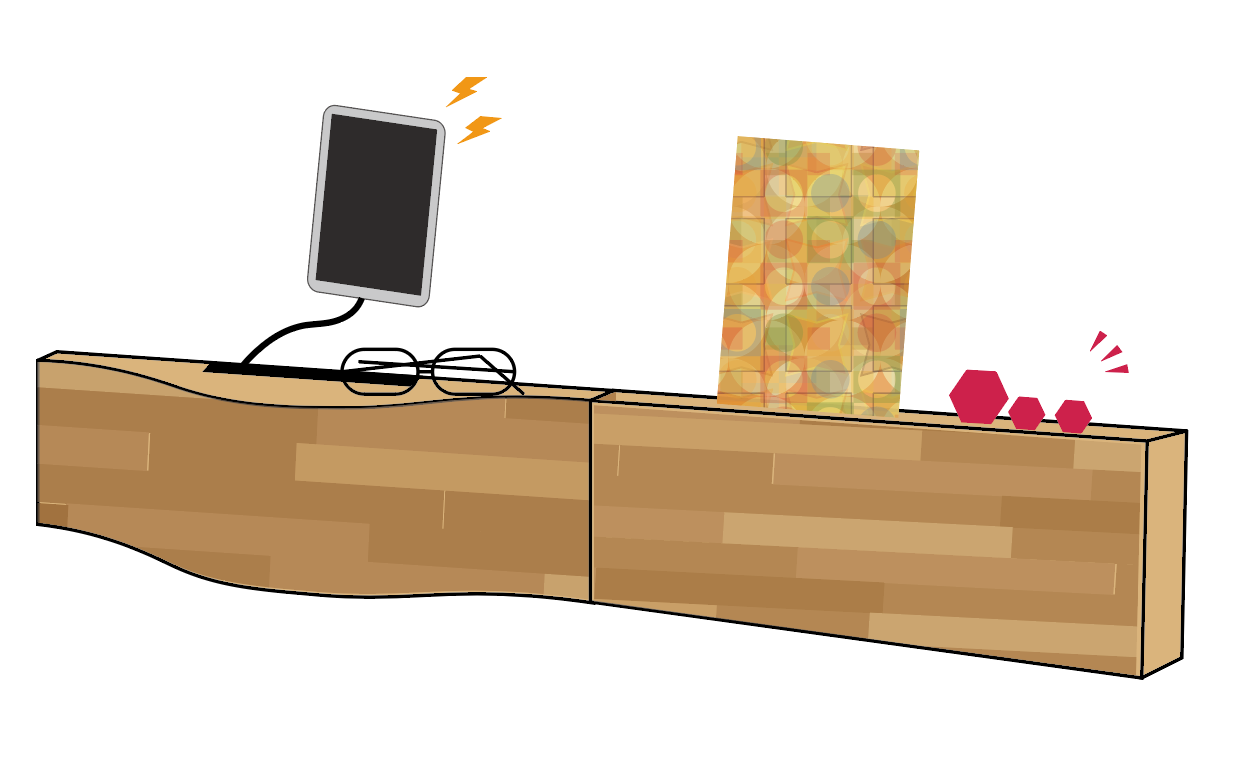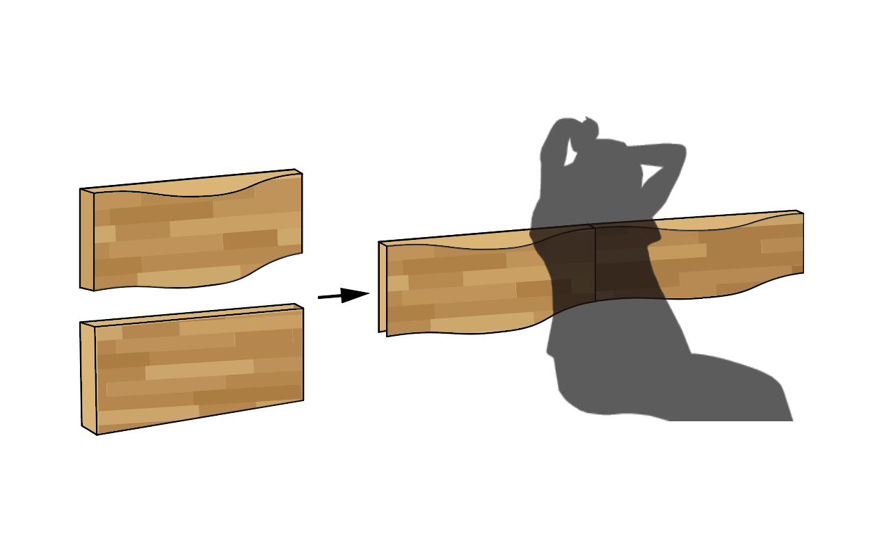 壁に取り付け、ベッドに座り、もたれる家具です。写真やチケットを飾ったり、本やスマホを置ける棚としての機能も。岩泉の集成材「広葉樹ミックス」を利用しており、この材ならではの印象的な模様が、部屋のワンポイントになります。